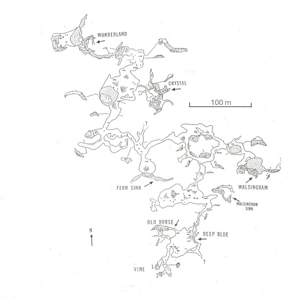 Primary phreatic caves feature smooth or sponge-like walls and “blind” passageways (leading to dead-ends) which are diagnostic of dissolution in saturated rock by very slow moving ground water i.e. in the phreatic environment. They formed as “mixing chambers and are not true conduits” (MY4).