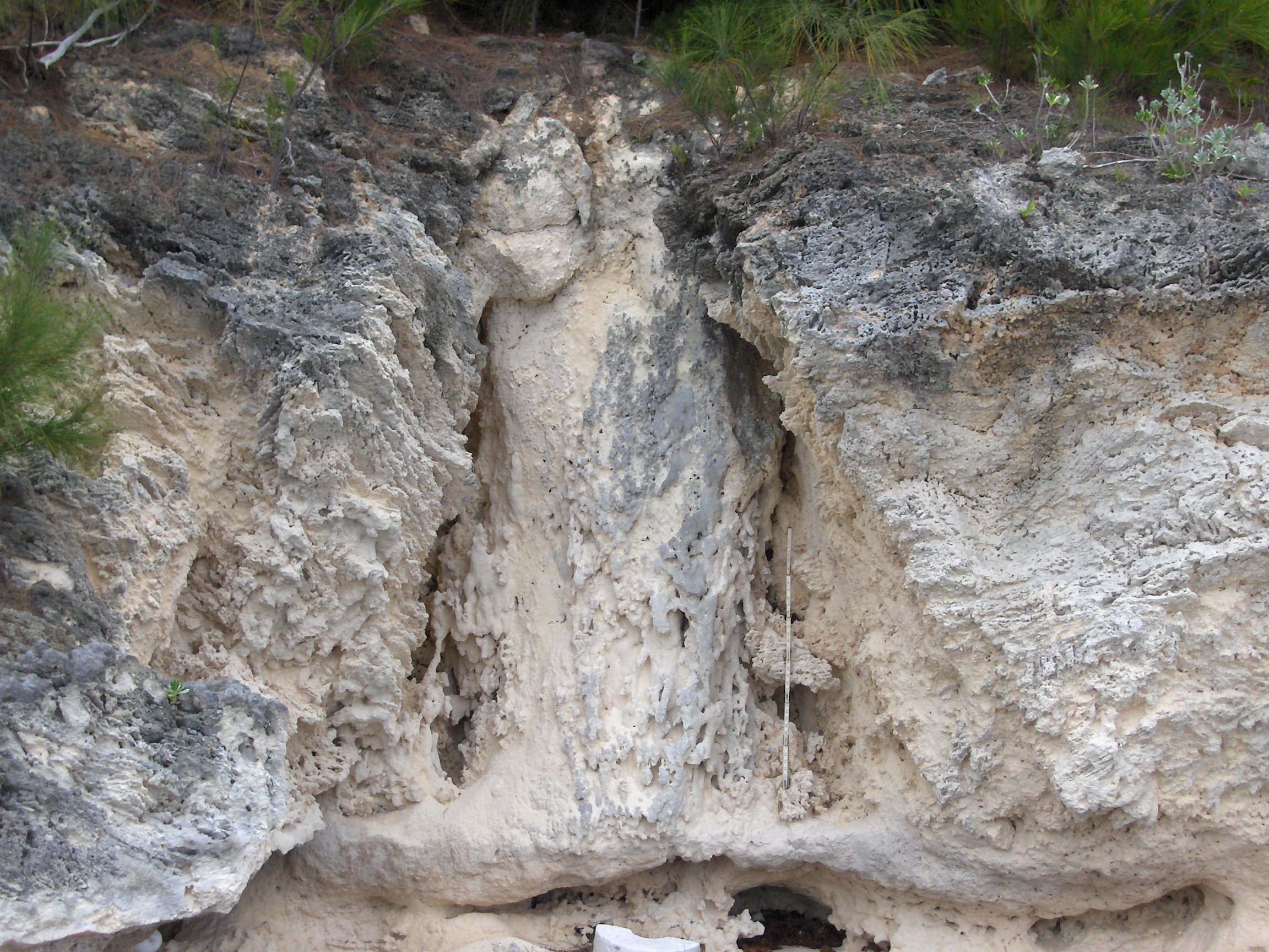 Soil-lined pipes or conical hollows are found in abundance along Bermuda’s rocky shorelines (Figures 6k and 6l). They are described in 19th and early 20th century accounts of Bermuda’s geology, at which time there was no consensus on their origin – and so commenced a long-running debate.