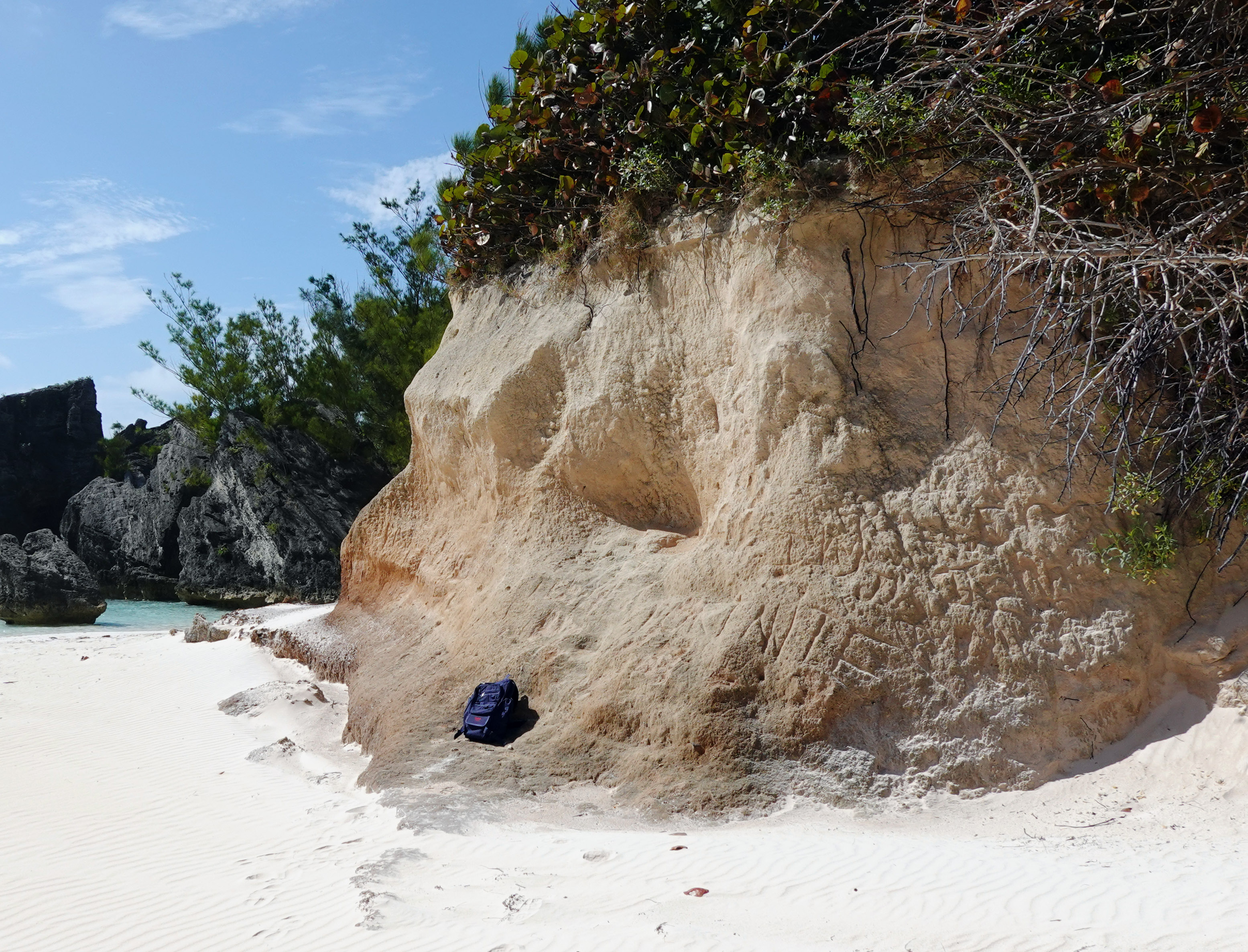 Fossil soils, or palaeosols, are thin undulating layers of sandy clay that run through Bermuda’s limestones and, in some cases, separate the geological formations (Chapter 5). They originally formed as surface soils on ancient landscapes where plants and trees grew. They are preserved today because they were buried by advancing sand dunes which eventually became cemented into limestone rock, known as eolianite (Chapter 3).